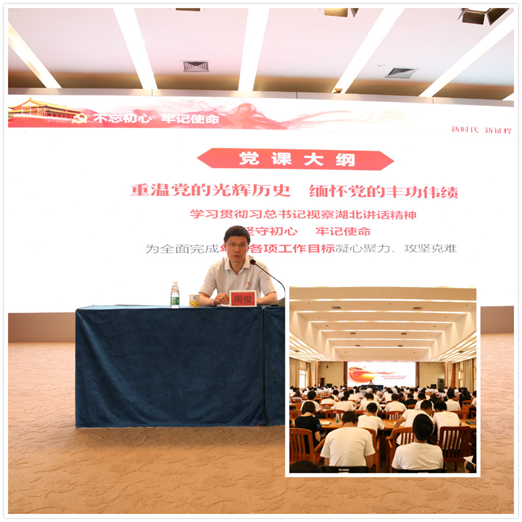 会上,公司党委书记、执行董事周俊,为全体党员干部讲授《不忘初心 牢记使命 奋力开创湖北路桥高质量发展新征程》专题党课。周俊从四个方面深入解读了习近平总书记视察湖北讲话精神: