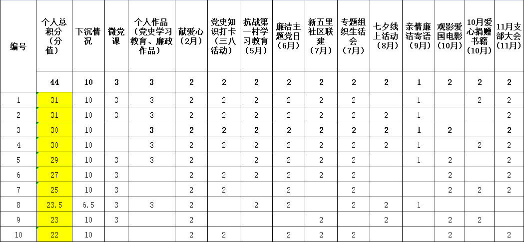 图:机关党支部积分排名