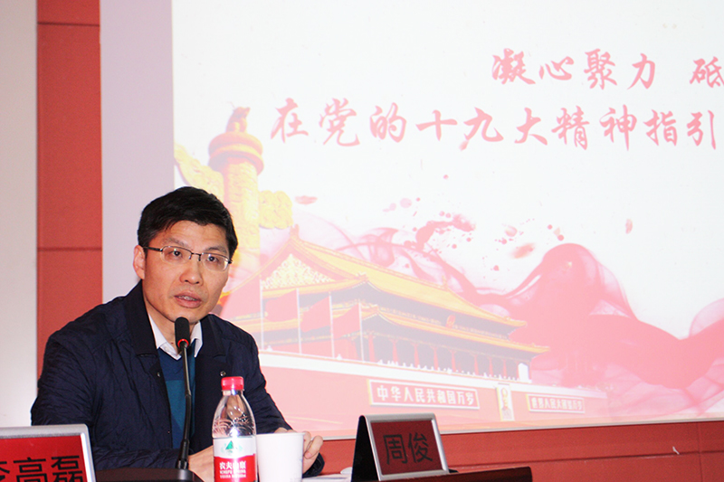 1月22日下午,公司党委书记、执行董事周俊同志为全体党员干部职工作了题为《凝心聚力 砥砺前行――在党的十九大精神指引下续写路桥新篇章》的专题党课宣讲,党课由公司纪委书记、常务副总经理李高磊同志主持。