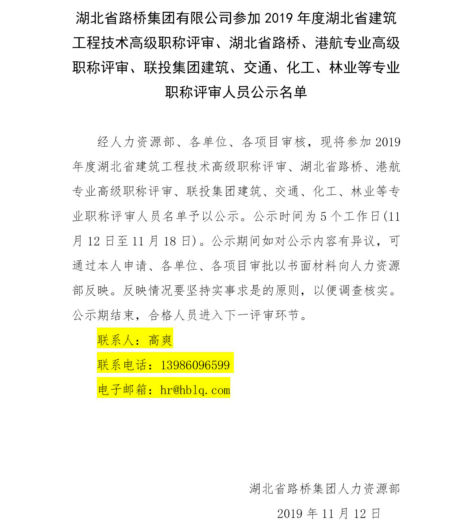 乐动手机网页版登录入口-乐动(中国) 参加2019年度湖北省建筑工程技术高级职称评审、湖北省路桥、港航专业高级职称评审、联投乐动手机网页版登录入口-乐动(中国) 建筑、交通、化工、林业等专业职称评审人员公示名单