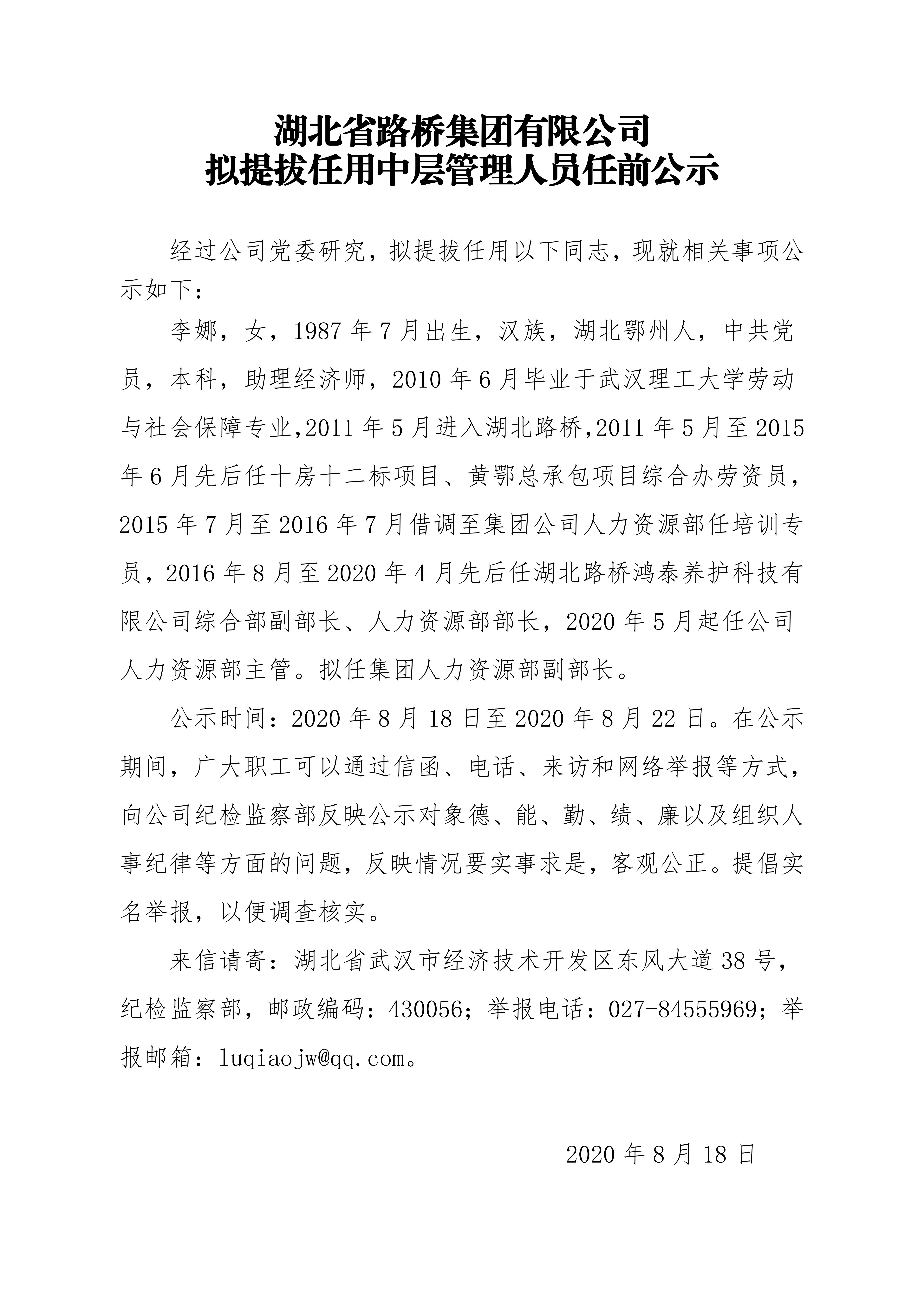 乐动手机网页版登录入口-乐动(中国) 拟提拔任用中层管理人员任前公示