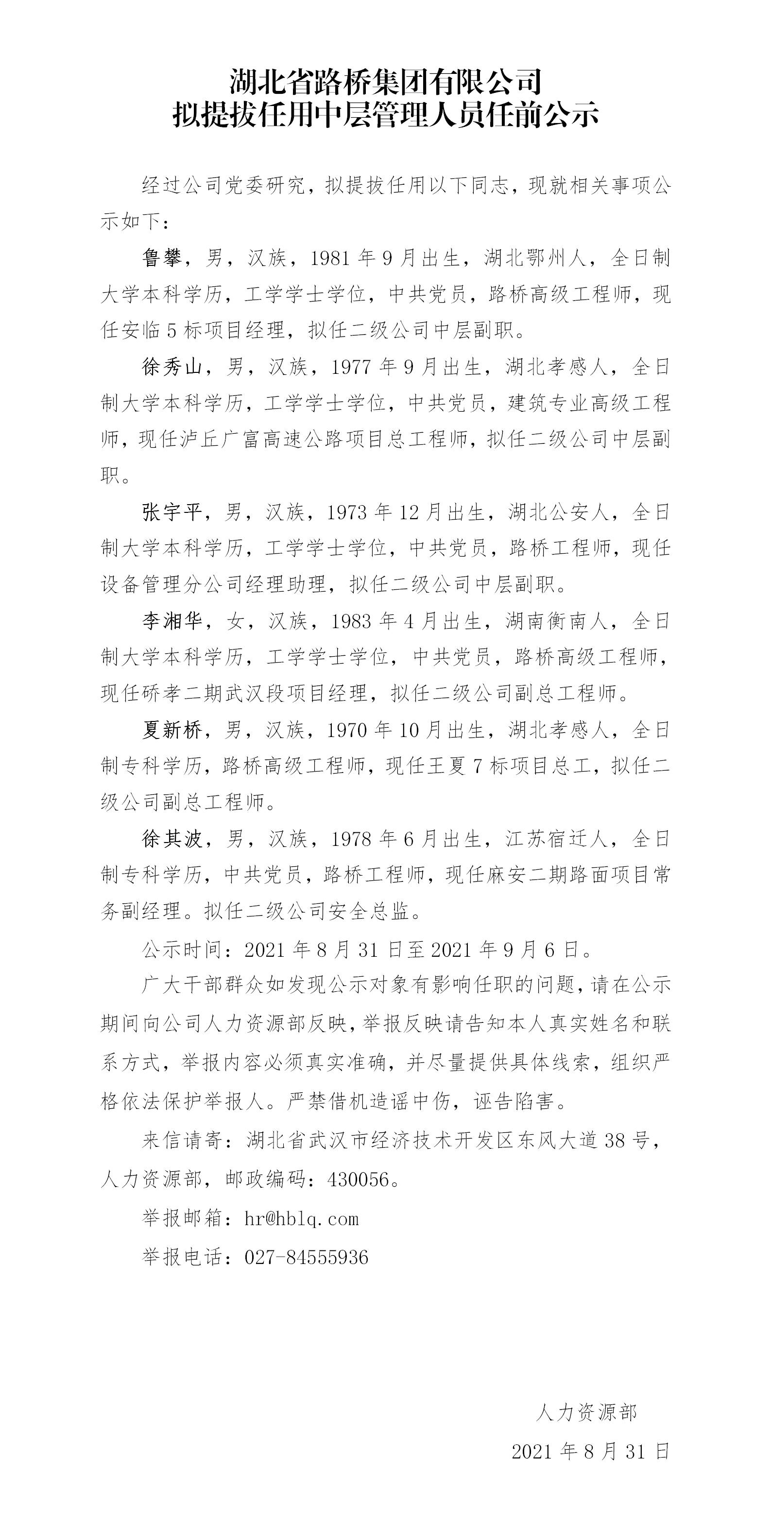 乐动手机网页版登录入口-乐动(中国) 拟提拔任用中层管理人员任前公示