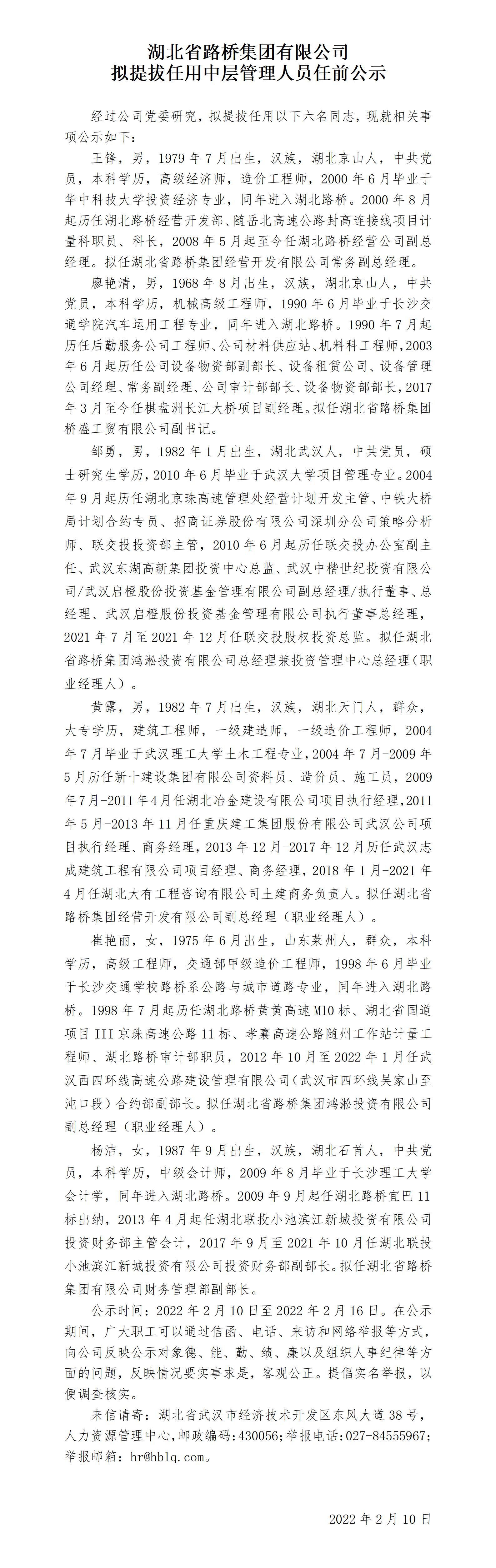 乐动手机网页版登录入口-乐动(中国) 拟提拔任用中层管理人员任前公示