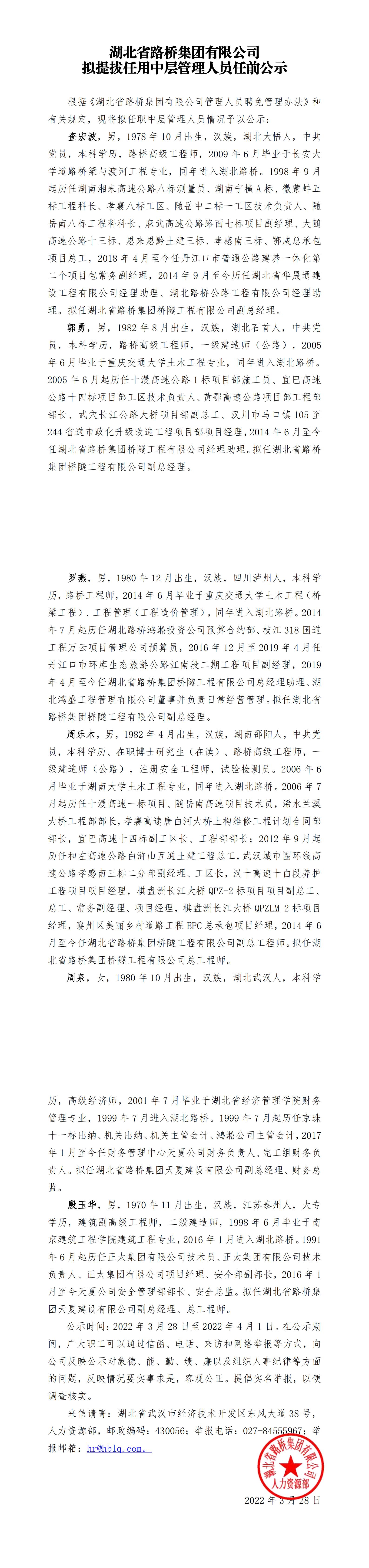 乐动手机网页版登录入口-乐动(中国) 拟提拔任用中层管理人员任前公示