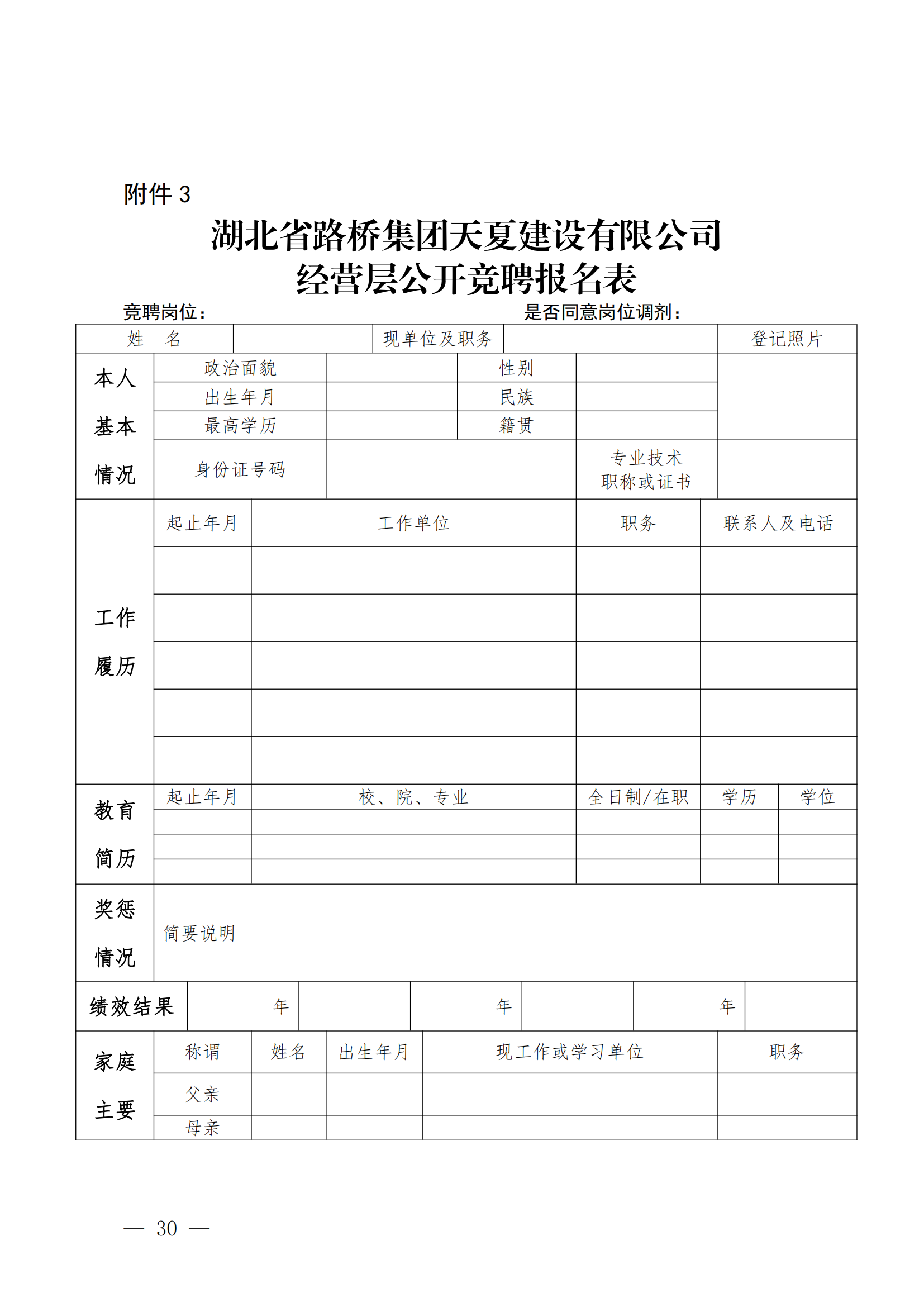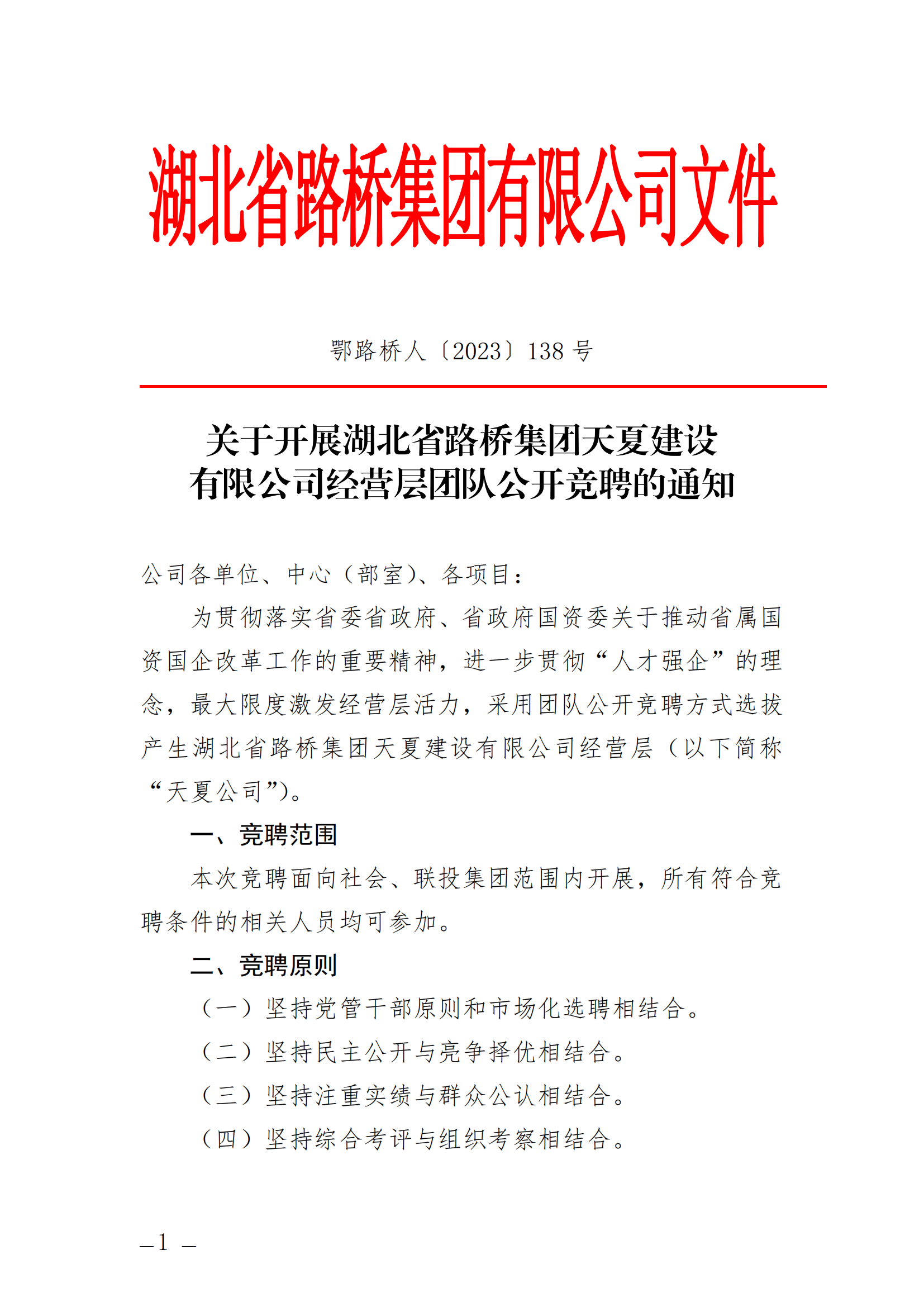 关于开展湖北省路桥乐动手机网页版登录入口-乐动(中国) 天夏建设有限公司经营层团队公开竞聘的通知