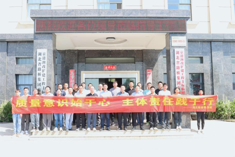 为贯彻落实湖北路桥关于质量建设的各项决策部署,发挥质量支撑作用,推动质量强企建设,9月25日,湖北路桥华晟通公司在京港澳改扩建工程1标项目举办以“加强质量支撑共建质量强国”为主题的2024年质量现场观摩交流活动。湖北路桥副总工程师、技术质量管理中心执行总经理殷源,华晟通公司党总支副书记、总经理张威,总工程师王文帅及主要领导班子出席活动。