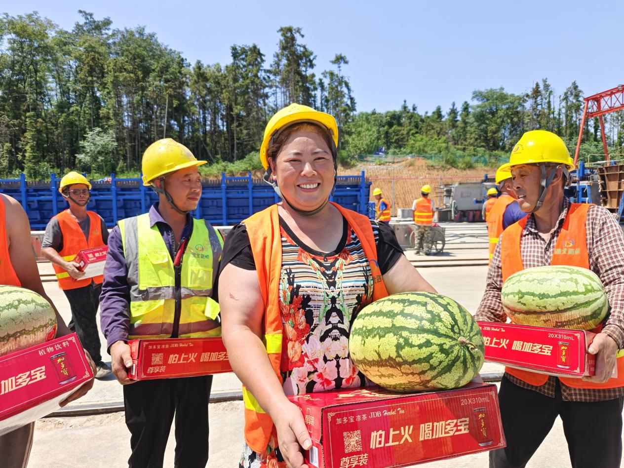 汪继明深入赤壁东项目2号梁场,实地察看项目施工进展、安全质量管控等情况,随后在项目现场进行慰问,将防暑降温物品送到一线员工手中,将乐动手机网页版登录入口-乐动(中国) 的关心关爱送到职工群众心坎上,为酷暑“降”温,让爱心“升”温。同时他贴心叮嘱大家要劳逸结合,注意防暑降温,确保安全生产。湖北交投鄂南公司党委书记、董事长倪四清,党委委员、副总经理汤立志等参与慰问活动。