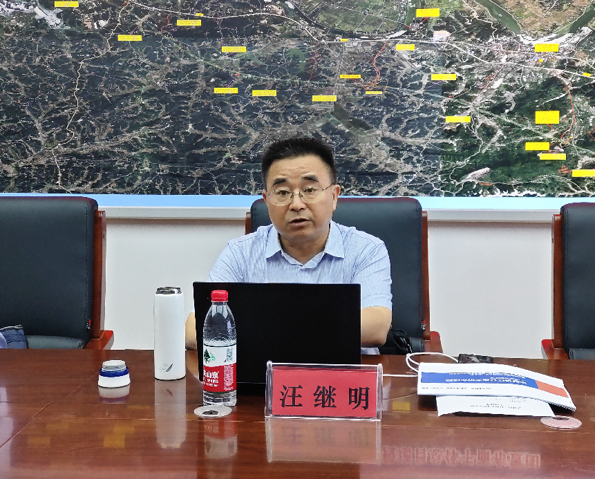 在项目部会议室观看项目全线航拍视频后,汪继明听取了赤壁东项目负责人王明关于项目安全生产、施工进度、审计整改、党建工作等方面的情况汇报,并同与会人员进行深入交流,剖析当前项目在建设推进过程中存在的问题,并就下一步项目建设工作提出指导意见。