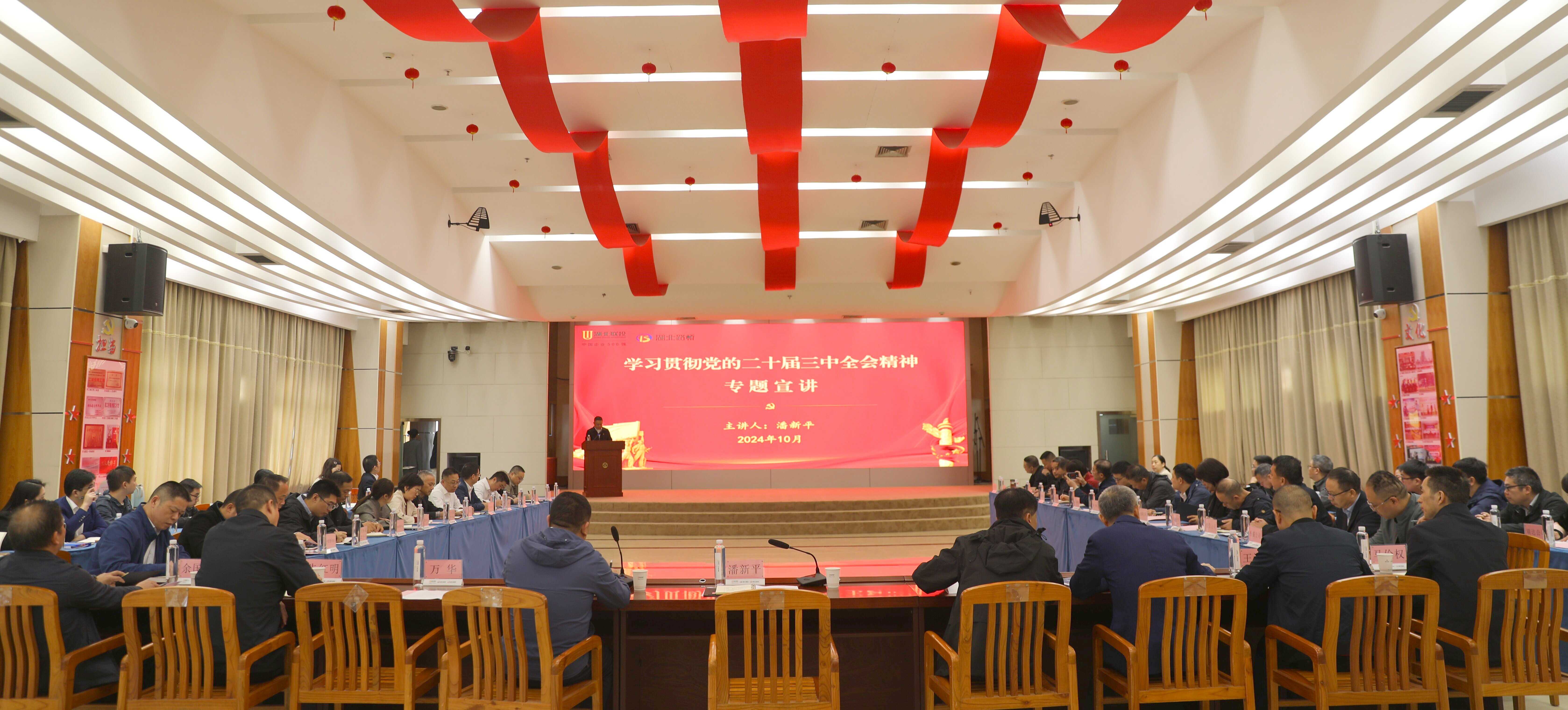 10月22日,湖北路桥召开党的二十届三中全会精神宣讲会暨2024年四季度调度会,党委书记、董事长潘新平出席会议并作宣讲,党委副书记、执行总经理郑杰安排部署工作,党委委员、副总经理周望虎主持会议,专职外部董事张保江及其他在汉班子成员出席会议。