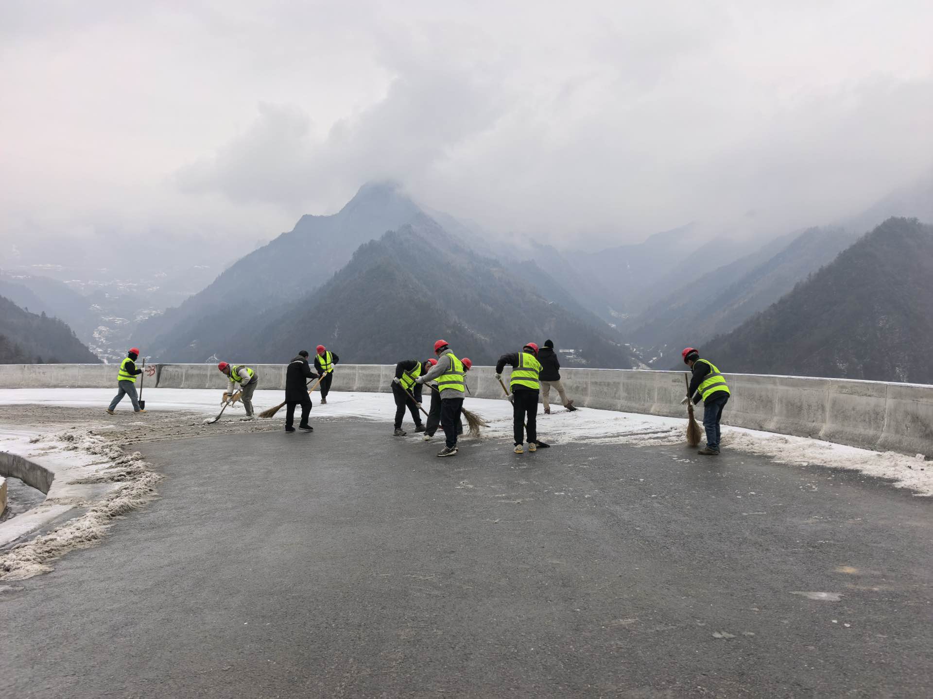 面对强降雪导致的交通公路路面结冰打滑,以及建筑工地施工通道、运输要道积雪结冰的双重隐患,五峰建养01包项目部迅速启动冰雪应急预案,组建专业抢险队伍,提前储备了足量环保型融雪盐、铁锹等应急物资,明确“先公路主干道、后工地关键区”作业逻辑,抢险队伍兵分两路展开作业:公路组驾驶皮卡车沿责任路段匀速行驶,重点对桥梁、弯道、坡道等易结冰部位精准撒布融雪盐;工地组采用“机械+人工”的协同模式,由撒盐车全面覆盖主干道,作业人员则手持工具对施工便道、材料堆场、脚手架通道等机械作业死角进行补撒,同时严格控制融雪盐用量,避免设备受到腐蚀,全体抢险人员实行24小时轮班巡查制度,每2小时检测一次路面防滑情况,累计撒布融雪盐3吨,清理积雪结冰路面6公里,确保了周边公路全线畅通和工地施工通道无结冰隐患。