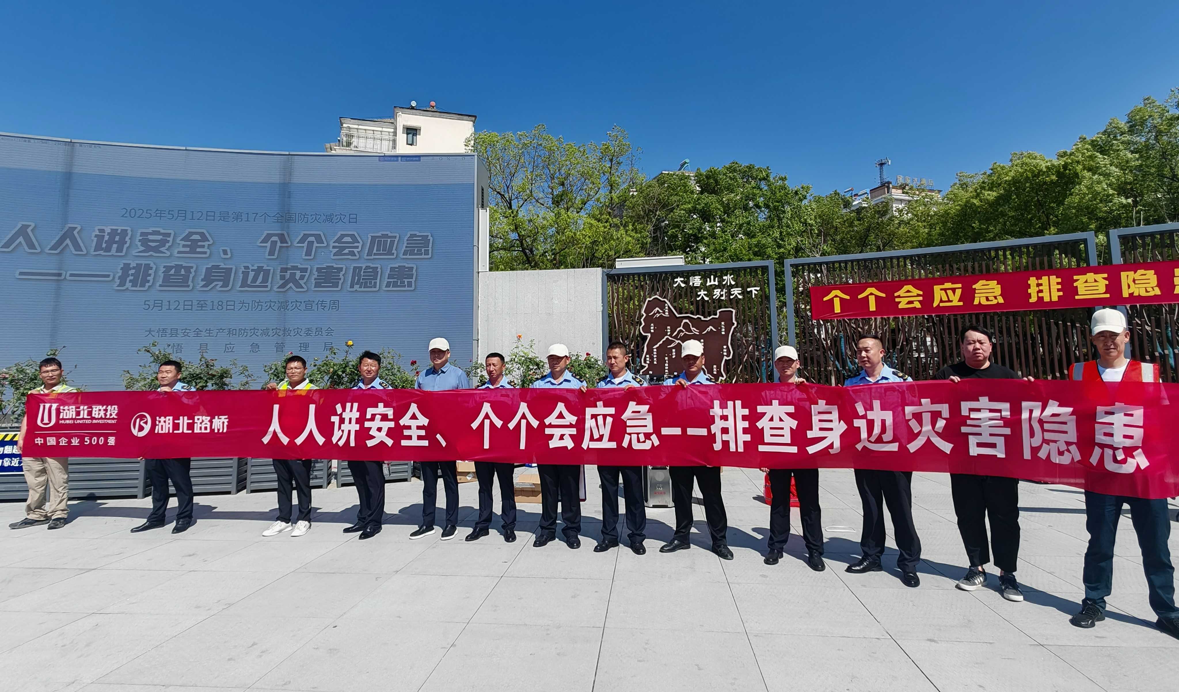 在第17个全国防灾减灾日到来之际,联投湖北路桥京港澳改扩建1标项目积极响应“人人讲安全、个个会应急”号召,积极参与大悟县安防委办公室组织开展的防灾减灾主题活动,掀起防灾教育热潮,将防灾减灾意识深植人心。