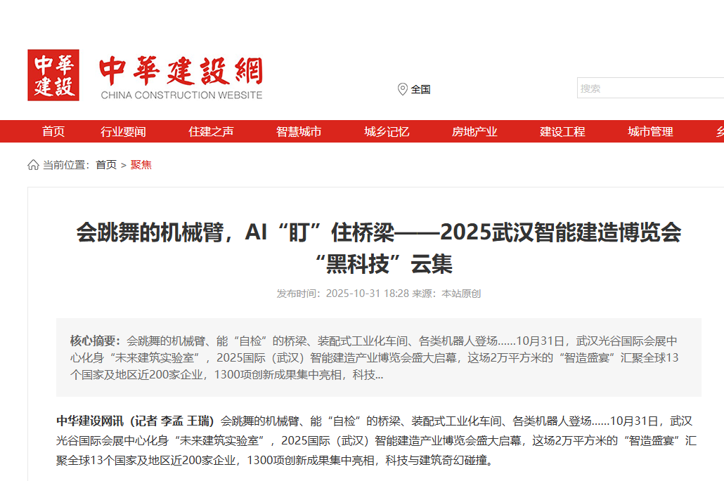 近日,2025国际(武汉)智能建造产业博览会在武汉举办,联投湖北路桥作为参展单位参加本次博览会,中华建设网对联投湖北路桥“黑科技”进行报道,以下是相关报道: