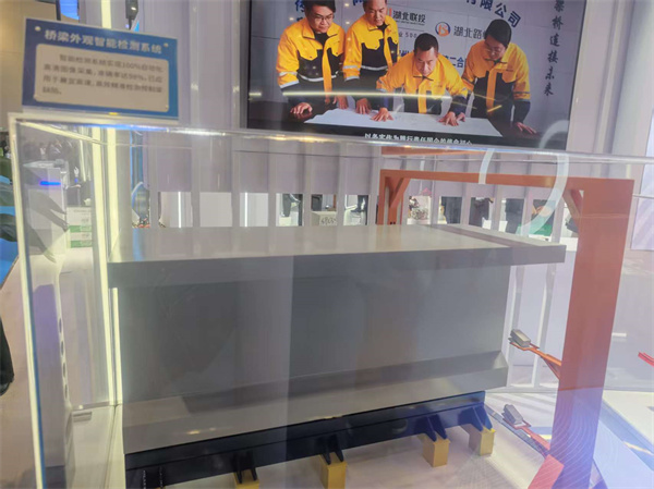 据了解,该系统的工作原理如下:机械臂精准抓取梁体,四台高清摄像头同步扫描,AI算法仅需30秒便能识别裂缝、蜂窝状孔洞等毫米级缺陷。此外,负责人指向模型上的二维码标识,“每片梁都有数字身份证,扫码即可追溯生产全流程。这种‘一物一码’的智能闭环,让质量缺陷从被动检测转向主动预防。” 这套监测系统相比去年版本,今年升级的算法模型融合了深度学习与边缘计算,对复杂纹理的识别准确率再提高3个百分点,通过实时监测预制梁应力变化,为特殊地质条件下的结构安全提供数据支撑。