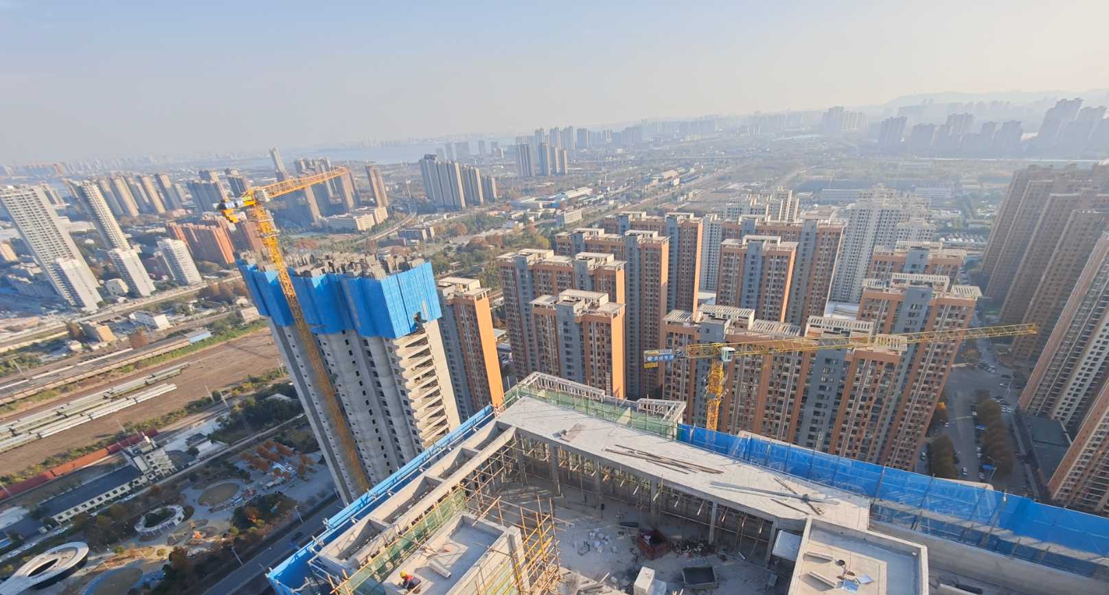 12月8日,位于武汉市洪山区烽胜东路烽胜公园附近的新建居住项目(毛坦村城中村改造K6地块)(一期)项目现场,4栋高层建筑耸立,其中3号楼已施工至42层,本月内,这栋楼将迎来结构封顶节点。届时,项目将实现主体结构全面封顶目标。
