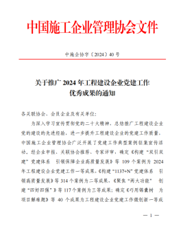 5月16日,中国施工企业管理协会公布了2024年“工程建设企业党建工作优秀成果”的名单,湖北路桥京港澳改扩建工程1标项目成功获评“工程建设企业党建工作优秀二等成果”。