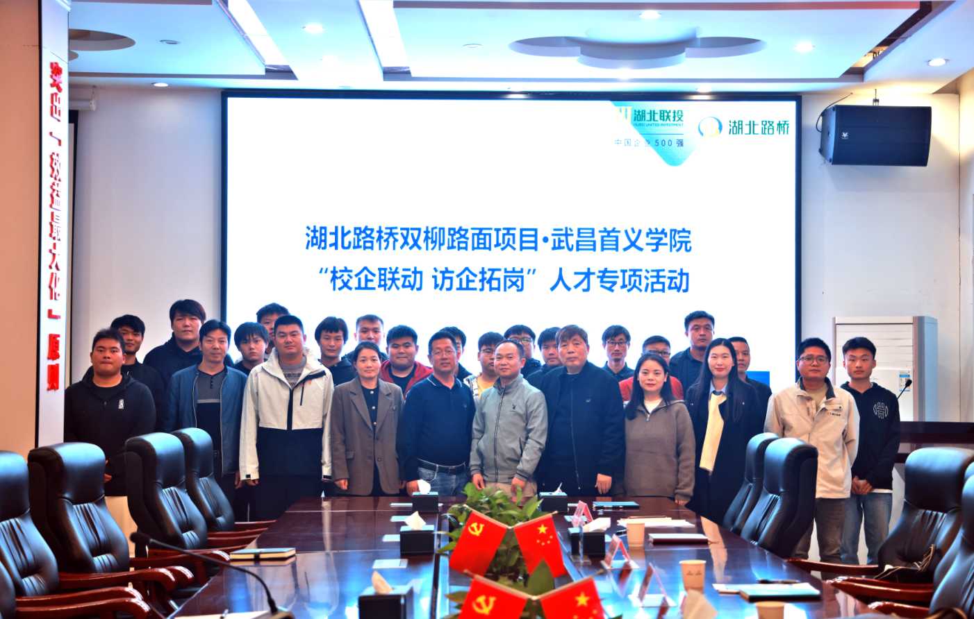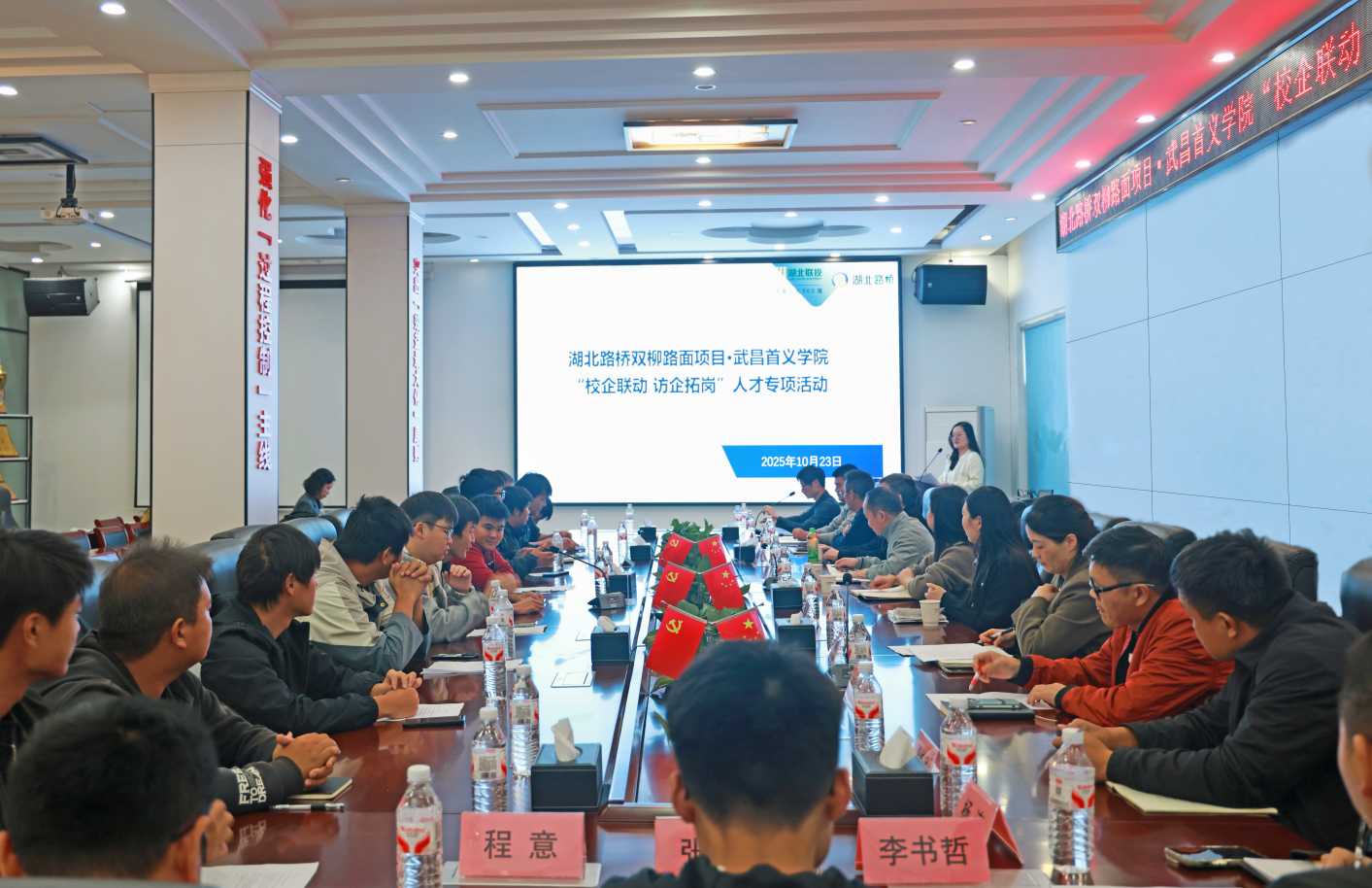 为深化产教融合、推动校企协同育人,10月23日下午,湖北路桥双柳长江大桥路面项目部联合武昌首义学院开展“校企联动 访企拓岗”人才专项活动,与武昌首义学院校企合作处处长、教务处副处长周自伦等座谈交流。